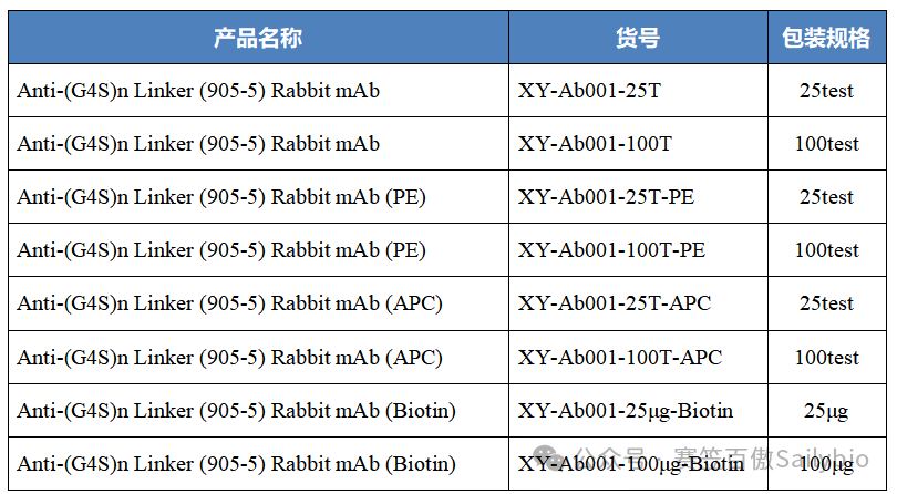 我司另有热销产品 Anti-G4S linker(905-5)mAb 可供选择,产品信息如下,可同步申请试用!